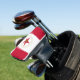 Golf putter cover with flag of city of Birmingham, Alabama; flag with three vertical bands of red and white with city seal with a star in the centre