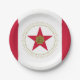 Paper plate with flag of city of Birmingham, Alabama; flag with three vertical bands of red and white with city seal with a star in the centre