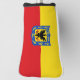 Golf putter cover with design with flag of Bogota, capital city of Colombia, red and yellow flag with coat of arms with eagle in the centre