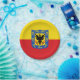 Paper plate with design with flag of Bogota, capital city of Colombia, red and yellow flag with coat of arms with eagle in the centre