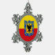 Snowflake Ornament with design with flag of Bogota, capital city of Colombia, red and yellow flag with coat of arms with eagle in the centre