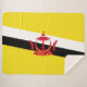 This design features the national flag of Brunei (officially known as the Nation of Brunei, the Abode of Peace), which is a country located on the north coast of the island of Borneo in Southeast Asia. Apart from its coastline with the South China Sea, Brunei is completely surrounded by the Malaysian state of Sarawak; the country is separated into two parts by the Sarawak district of Limbang. Brunei is the only sovereign state completely on the island of Borneo; the remainder of the island's territory is divided between the nations of Malaysia and Indonesia. The capital of Brunei is Bandar Seri Begawan, which is also the country's largest city. Other major cities and towns in Brunei include Kuala Belait, Seria, Tutong and Bangar.
