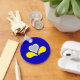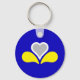 Keychain with design with flag of Brussels-Capital Region of Belgium, blue flag with yellow, grey and white iris