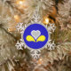 Snowflake Ornament with design with flag of Brussels-Capital Region of Belgium, blue flag with yellow, grey and white iris