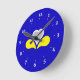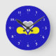 Clock with design with flag of Brussels-Capital Region of Belgium, blue flag with yellow, grey and white iris