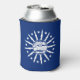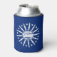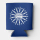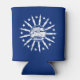 Can cooler with flag of city of Buffalo, New York; blue flag with white seal of the city and 13 lightning bolts