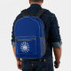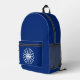 Backpack with flag of city of Buffalo, New York; blue flag with white seal of the city and 13 lightning bolts