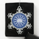 Snowflake Ornament Flag with flag of city of Buffalo, New York; blue flag with white seal of the city and 13 lightning bolts