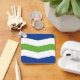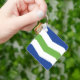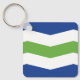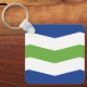 Keychain with a design with the flag of Burlington, Vermont. A blue, white, and green flag