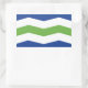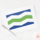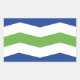 Sticker with a design with the flag of Burlington, Vermont. A blue, white, and green flag