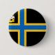 Round Button with design with a flag of historic county of Caithness, in Scotland, Great Britain; black flag with blue and yellow Nordic cross and an illustration of a ship with a raven on its sail in the upper hoist