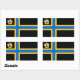 Sticker with design with a flag of historic county of Caithness, in Scotland, Great Britain; black flag with blue and yellow Nordic cross and an illustration of a ship with a raven on its sail in the upper hoist