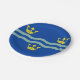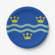 Paper plate with design with a flag of historic county of Cambridgeshire, in England, Great Britain; blue flag with three golden crowns and two waves