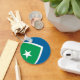 Keychain with a design with a design with the flag of Cedar Rapids, Iowa. A green and blue flag with a white star
