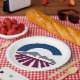 Paper Plate with a design with the flag of Chandler, Arizona. A white flag with a seal in the centre