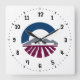 Clock with a design with the flag of Chandler, Arizona. A white flag with a seal in the centre