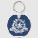 Button Keychain with flag of Charleston, South Carolina; blue flag with seal of the city