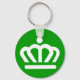 Keychain with one of the two official flags of Charlotte, North Carolina. A green flag with a white crown