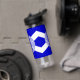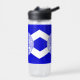 Water Bottle with one of the two official flags of Charlotte, North Carolina. A blue flag with a white saltire (Saint Andrew’s Cross) and a seal