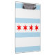 Clipboard with flag of city of Chicago (largest city in Illinois), white and light blue striped flag with four red stars