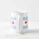 Mug with flag of city of Chicago, Illinois, white and light blue striped flag with four red stars