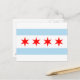 Postcard with flag of city of Chicago (largest city in Illinois), white and light blue striped flag with four red stars