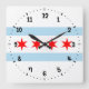 Wall Clock with flag of city of Chicago (largest city in Illinois), white and light blue striped flag with four red stars