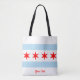 Customisable Tote bag with flag of city of Chicago (largest city in Illinois), white and light blue striped flag with four red stars