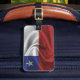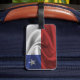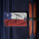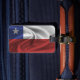 Luggage tag with the flag of Chile in wavy fabric style design. This design features the Chilean flag colours and design with a beautiful waving material textured effect. This flag design is a great way to show you are proud to be from Chile.