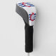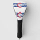 Golf driver cover with flag of city of Cincinnati, Ohio; white flag with three blue waves with red “C” in the centre