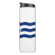 Tumbler with flag of city of Cincinnati, Ohio; white flag with three blue waves with red “C” in the center