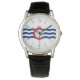 Watch with flag of city of Cincinnati, Ohio; white flag with three blue waves with red “C” in the centre