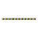 Ribbon with flag of Fresno, California; flag with three vertical bands of brown, blue and green, with stylised illustrations of cog, plant and sun