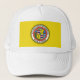 Hat with flag of Honolulu, Hawaii; yellow flag with charged with seal of Honolulu