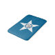 Bath mat with flag of Houston, Texas; blue flag with seal of Houston in a white star, with an illustration of a train