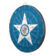 Dartboard with flag of Houston, Texas; blue flag with seal of Houston in a white star, with an illustration of a train