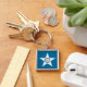 Square Keychain with flag of Houston, Texas; blue flag with seal of Houston in a white star, with an illustration of a train