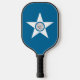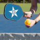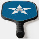 Pickleball Paddle with flag of Houston, Texas; blue flag with seal of Houston in a white star, with an illustration of a train