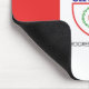 Mousepad with flag of city of Cleveland, Ohio; flag with three vertical bands of red, white and blue with seal of the city in the centre