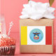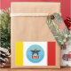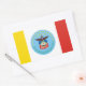 Sticker with flag of city of Columbus, Ohio; flag with three vertical bands of yellow, white and red with blue seal of the city with bald eagle in the centre