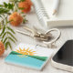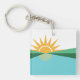 Keychain with a design with the flag of Coral Springs, Florida. A white, green, and blue flag with a yellow rising sun
