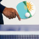 Ping Pong Paddle with a design with the flag of Coral Springs, Florida. A white, green, and blue flag with a yellow rising sun