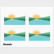 Sticker with a design with the flag of Coral Springs, Florida. A white, green, and blue flag with a yellow rising sun