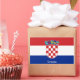The flag of Croatia is one of the state symbols of Croatia. It consists of three equal size, horizontal stripes in colours red, white and blue. The flag combines the colours of the flags of the Kingdom of Croatia (red and white), the Kingdom of Slavonia (white and blue) and the Kingdom of Dalmatia (red and blue). Those three kingdoms are the historic constituent states of the Croatian Kingdom. In the middle is the Coat of Arms of Croatia. The red-white-blue tricolour has been used as the Croatian flag since 1848. While the Banovina of Croatia existed within the Kingdom of Yugoslavia, it had a similar flag without the modern crown above the chequy. During the Independent State of Croatia, flag was like the modern, but without crown and there was letter "U" at the top left of the flag. Also, first field of Croatian chequy was white. While Croatia was part of SFR Yugoslavia its tricolour was the same, but it had a five-pointed red star with a yellow border in place of the coat of arms. The star was replaced by the coat in May 1990, shortly after the first multiparty elections. The current flag and the coat of arms were officially adopted on 21 December 1990, about ten months before the proclamation of independence from Yugoslavia and a day before the Constitution of Croatia on 22 December 1990. The shield is in the red and white checks of Croatia. Above is a crown made of shields of its various regions. From left to right they are the ancient arms of Croatia, Dubrovnik, Dalmatia, Istria, and Slavonia.