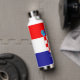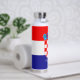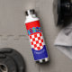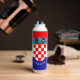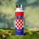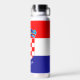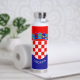 This water bottle features the flag of Croatia with the Croatian coat of arms and a customisable text "CROATIA" in white font on the blue stripe at the bottom.