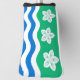 Golf Head Cover with design with a flag of historic county of Cumberland, in England, Great Britain; green flag with three Parnassus flowers and white and blue waves