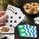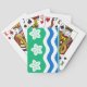 Poker playing cards with design with a flag of historic county of Cumberland, in England, Great Britain; green flag with three Parnassus flowers and white and blue waves