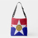 Bag with flag of city of Dallas, Texas; flag with red and blue horizontal bands with seal of the city inside of a white star in the centre