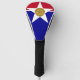 Golf Head Cover with flag of city of Dallas, Texas; flag with red and blue horizontal bands with seal of the city inside of a white star in the centre