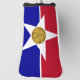 Golf putter cover with flag of city of Dallas, Texas; flag with red and blue horizontal bands with seal of the city inside of a white star in the centre